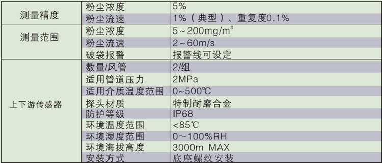 6、 風(fēng)道中的粉塵含量或傳感器上的積灰不影響系統(tǒng)的測(cè)量精度;